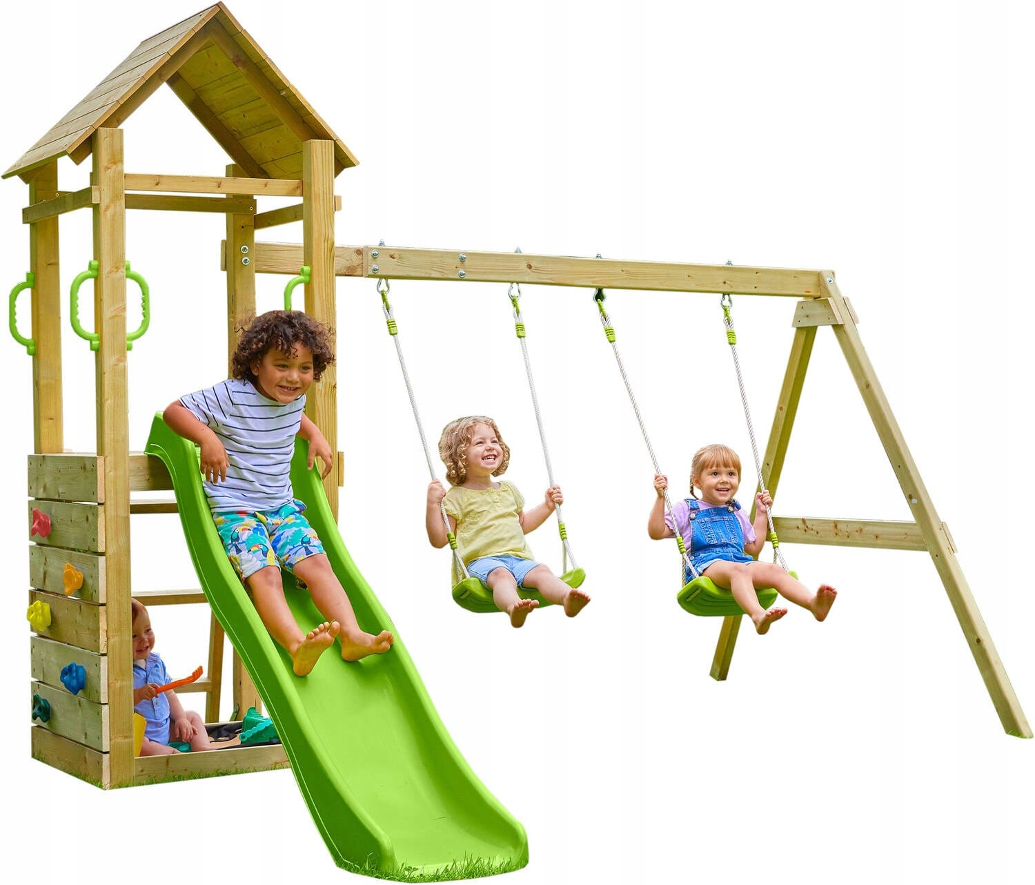 PLAC ZABAW DREWNIANY DOMEK ZJEŻDŻALNIA 2 HUŚTAWKI Piaskownica WIEŻA ŚCIANKA