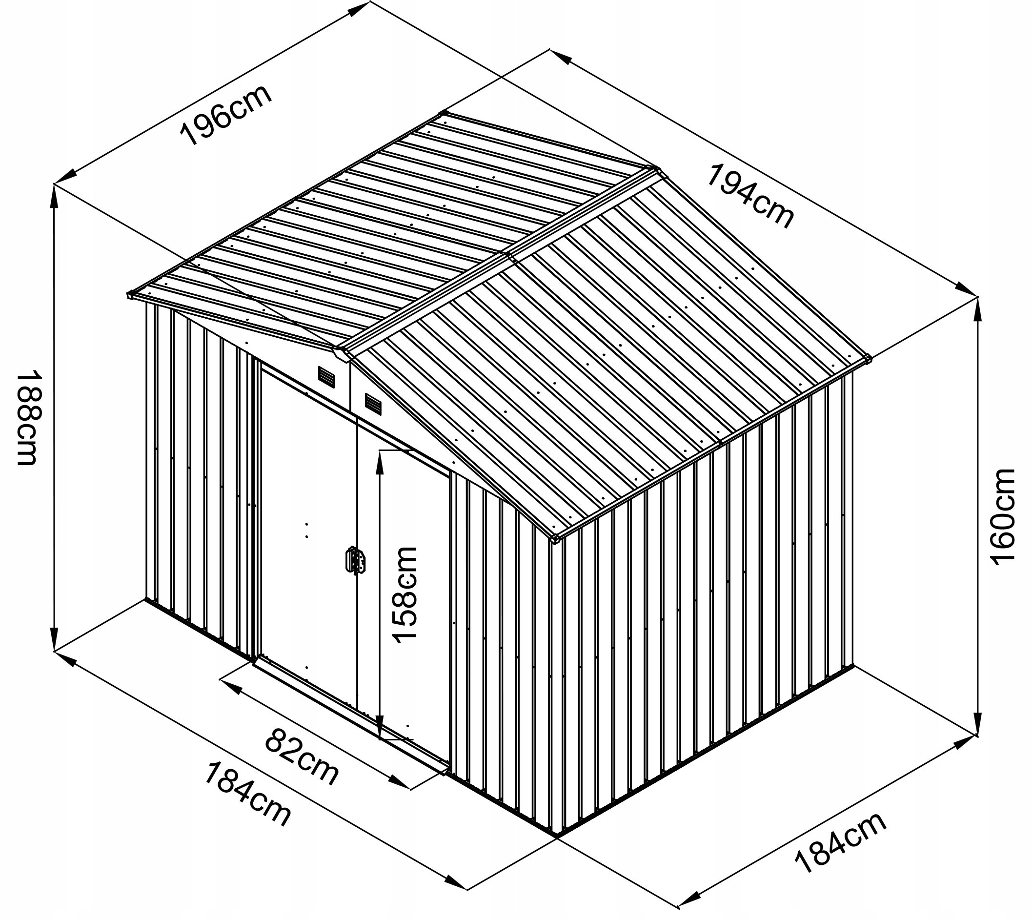 DOMEK NARZĘDZIOWY OGRODOWY 196x194x188cm BLASZANY METALOWY ALTANA GARAŻ
