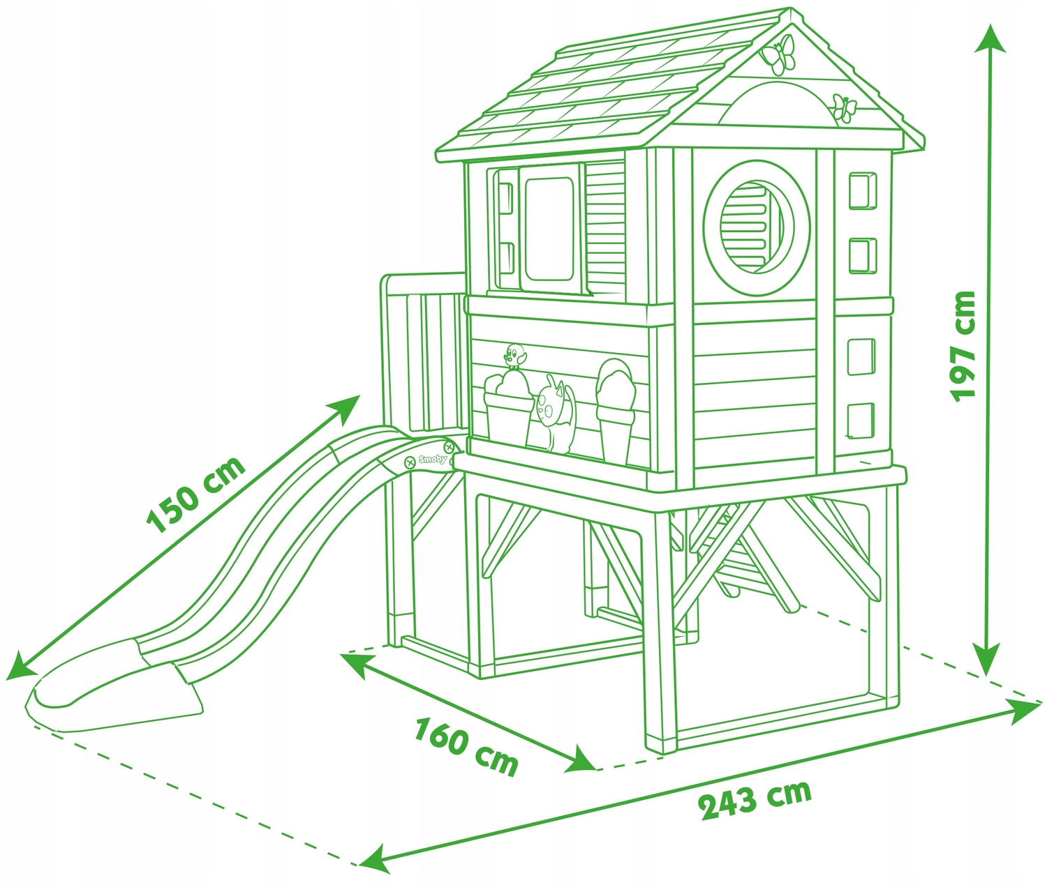 - Szerokość domku ze zjeżdżalnią: 243 cm