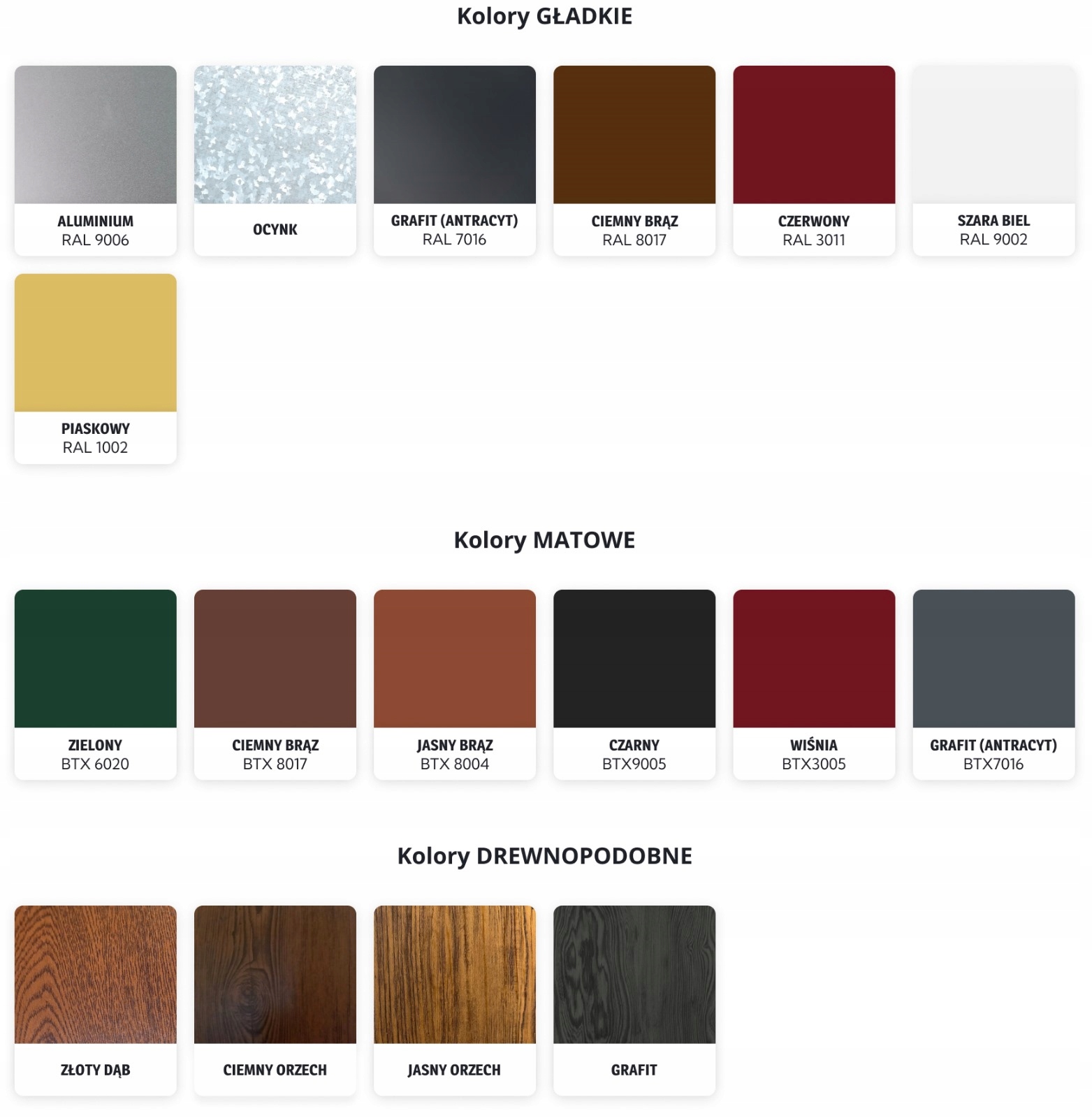 Duży nacisk kładziemy na estetyczne wykonanie naszych konstrukcji, dlatego oprócz klasycznego wykończenia w kolorze ocynk, dostępne są również kolory z palet RAL oraz BTX, jak również wykończenie imitujące drewno dębowe lub orzech z wyraźnie zaznaczonymi słojami w wersji połysk i mat.