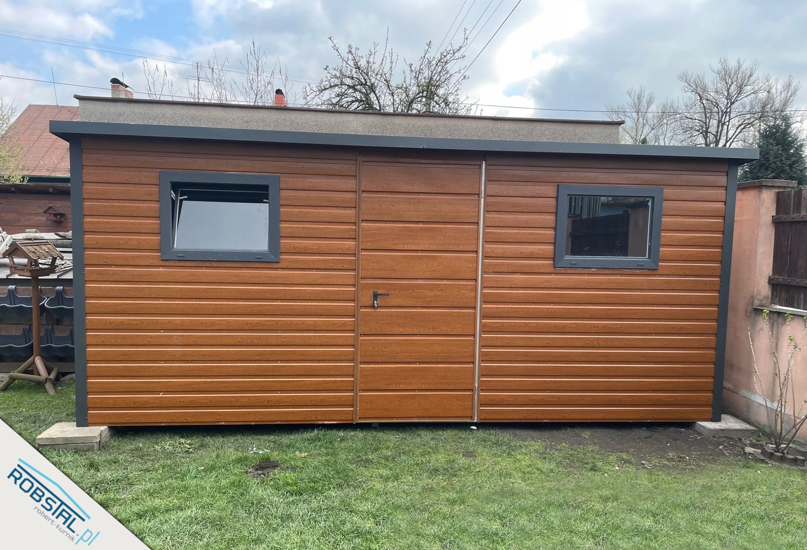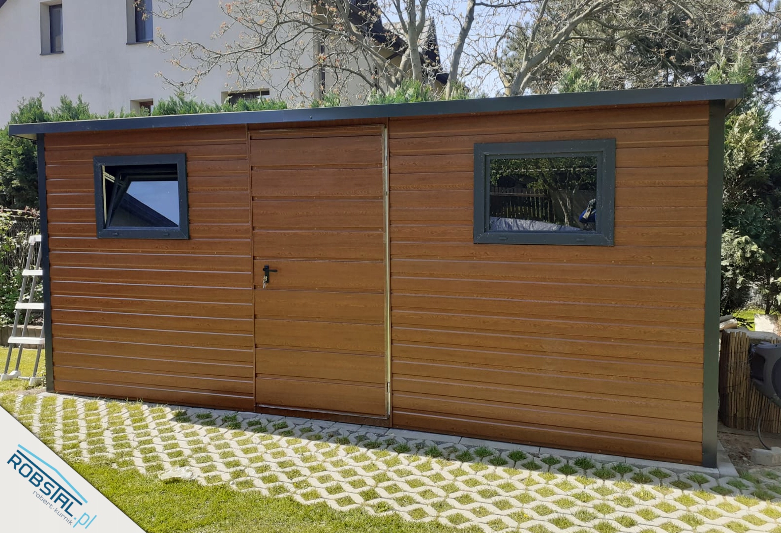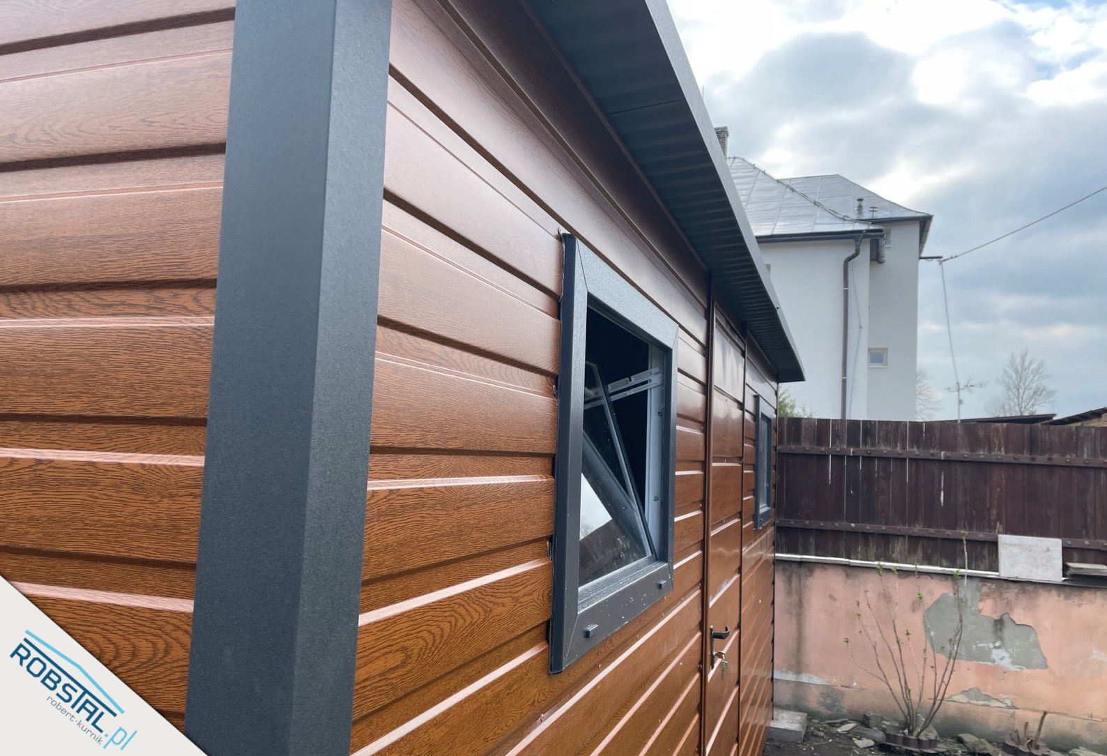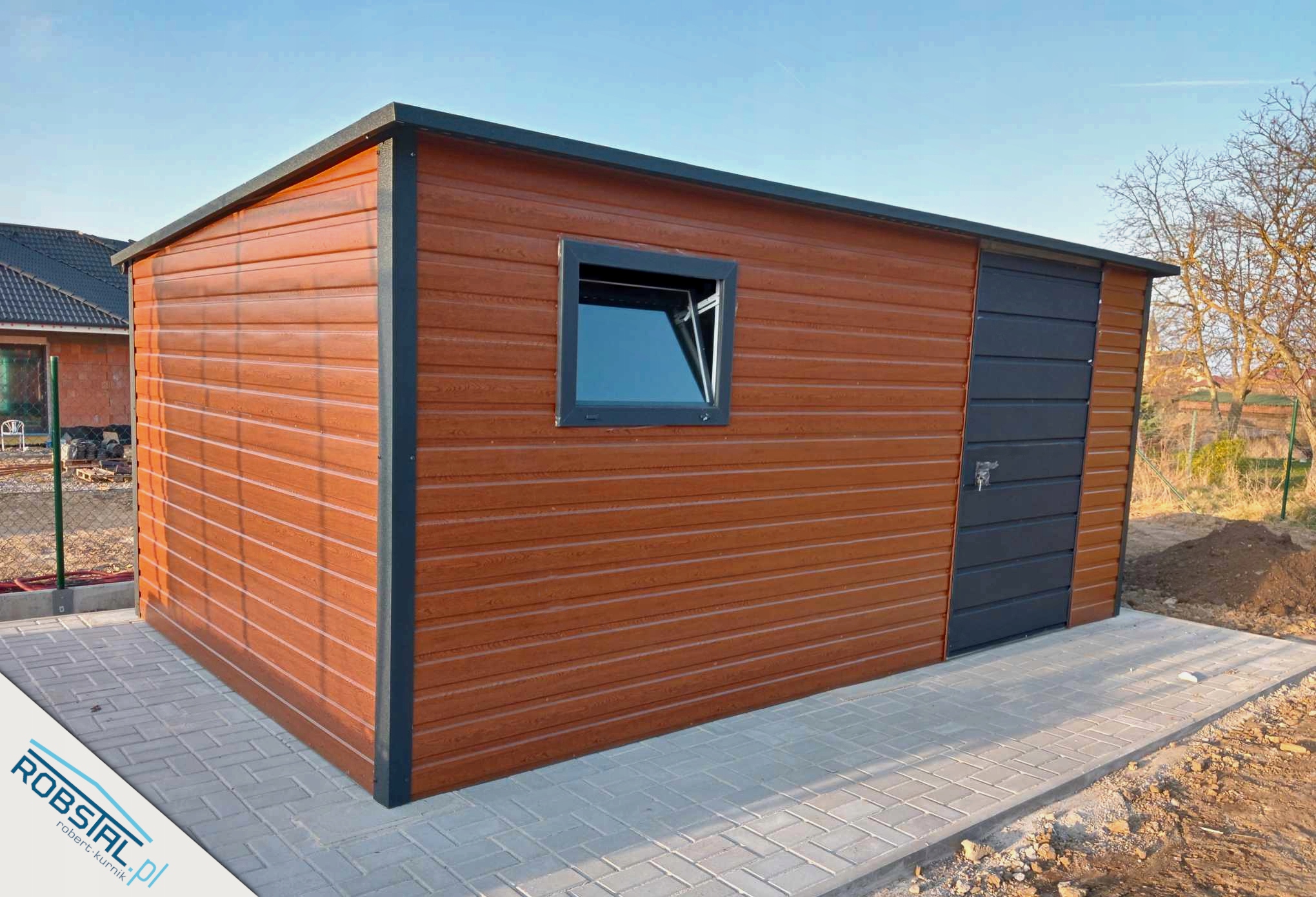 Garaż Blaszany Domek Ogrodowy 5x3m drewno + grafit