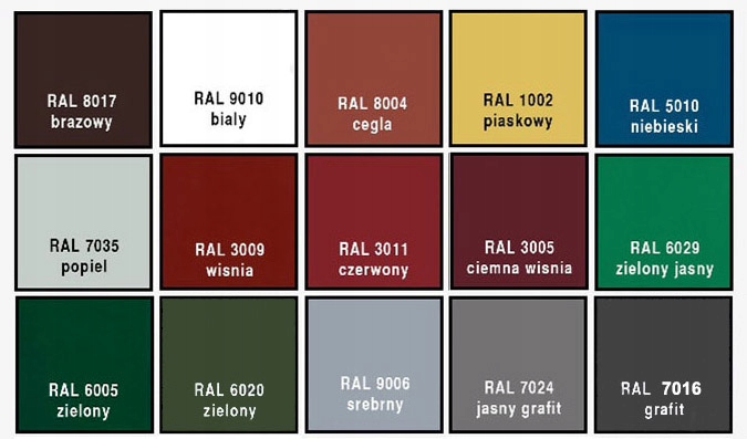DOSTĘPNE KOLORY BLACH Z PALETY RAL POŁYSK SĄ PRZEDSTAWIONE OBOK