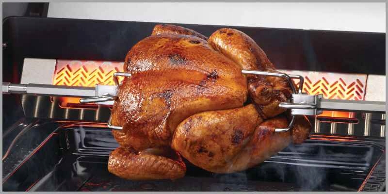 Grill Rogue 425 posiada przeznaczony dla tego modelu palnik do pieczenia na rożnie. Został on zamontowany wzdłuż tylnej ściany piekarnika, a posługiwać się nim można za pomocą pokrętła umieszczonego na panelu sterowania. Pieczenie na rożnie w grillu Rogue wprowadza zupełnie nowe standardy w sztuce pieczenia! Dzięki nim każde mięso, które zechcesz przyrządzić, bez względu na to, czy to będzie drób, czy inny rodzaj, będzie niewyobrażalnie miękkie i delikatne w środku, a na zewnątrz z tym, co „tygrysy” lubią najbardziej, czyli z pysznie chrupiącą skórką! Dedykowany do grilla Napoleon Rogue sprawdzi się nawet przy wypiekaniu pizzy na kamieniu szamotowym!